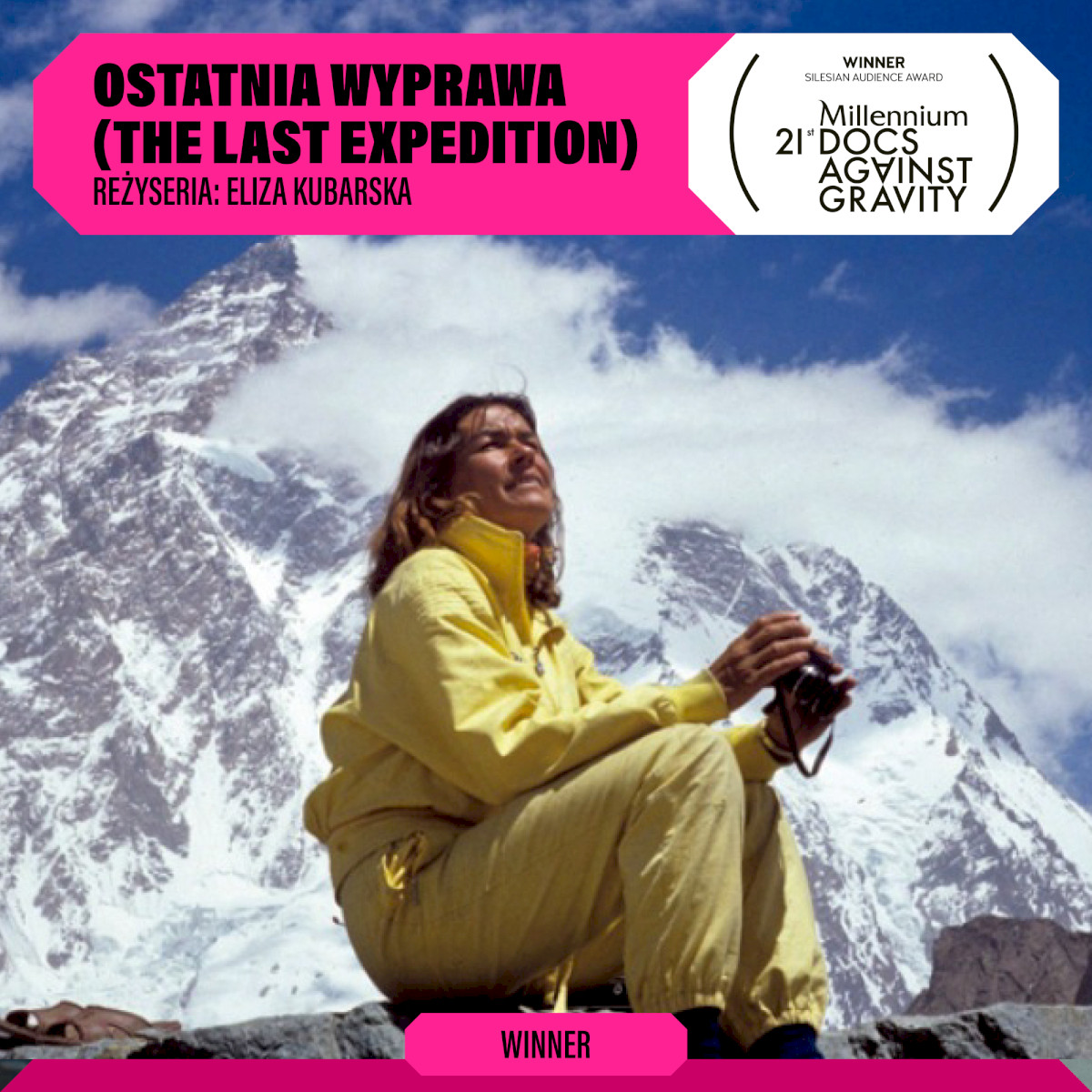 Justification: We present the Association of Studio Cinemas Award in the Polish competition to the film The Last Expedition, directed by Eliza Kubarska, for a cinematic journey in search – which does not only take place in the mountains – of the spirit of Wanda Rutkiewicz, and for skillfully combining personal archives with a metaphysical peaks expedition.
