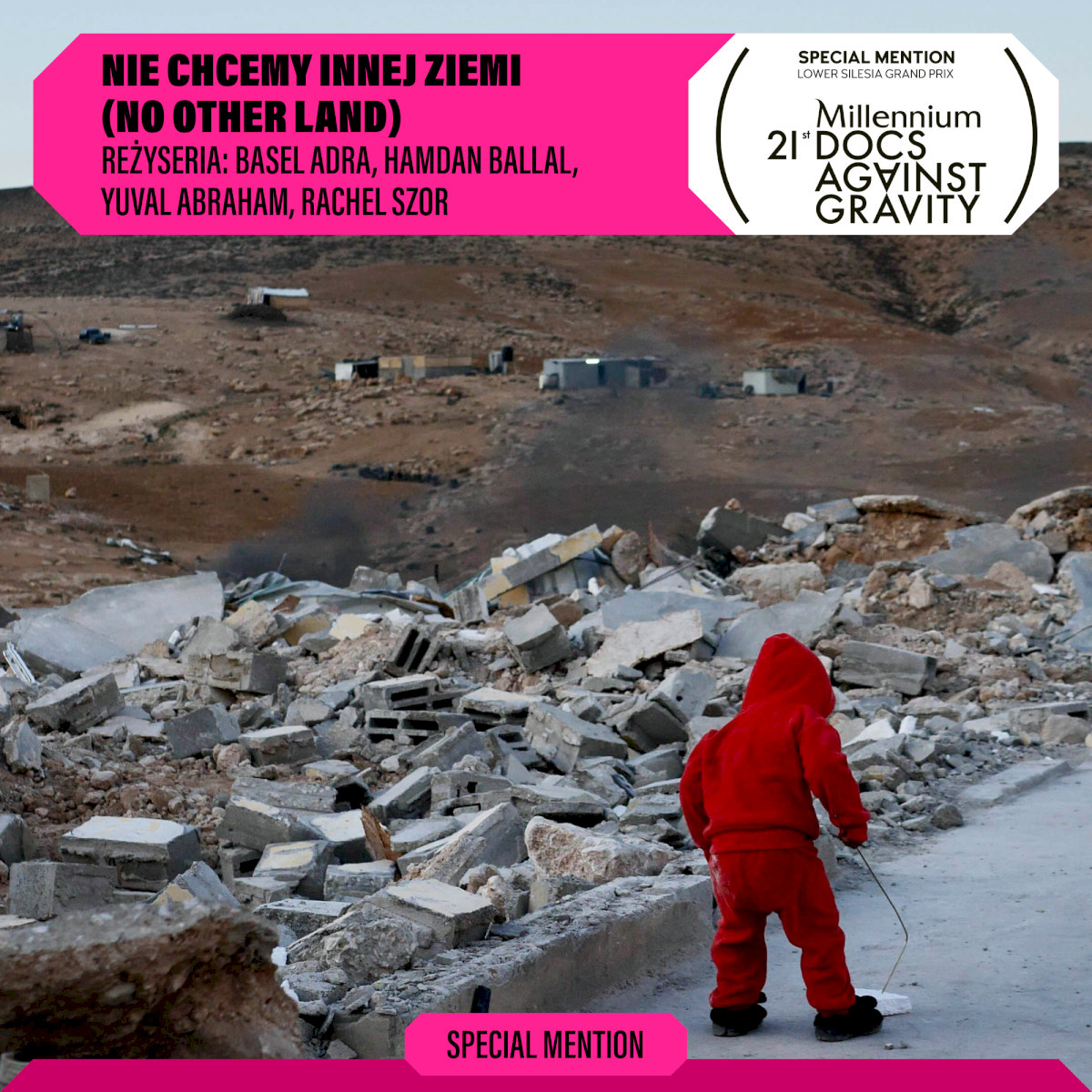 Z kolei projekcja „Nie chcemy innej ziemi” zaplanowana jest na sobotę na 15:45. Film ukazuje ciągnącą się przez dekady batalię prawną mieszkańców Masafer Yatta na Zachodnim Brzegu o zachowanie swojej wioski. Widzimy ich codzienność, która naznaczona jest niesprawiedliwością i upokorzeniami. Palestyńsko-izraelski filmowy kolektyw kręcił wydarzenia w wiosce przez pięć lat, korzystając przy tym z wcześniejszych nagrań mieszkańców. Zarejestrował filmowe świadectwo wielu prób wyrzucenia mieszkańców wioski i krwawych aktów przemocy popełnionych przez izraelskie wojsko i osadników. Film nie proponuje gotowych rozwiązań, stając się bardzo aktualnym wołaniem o równość i pokój.