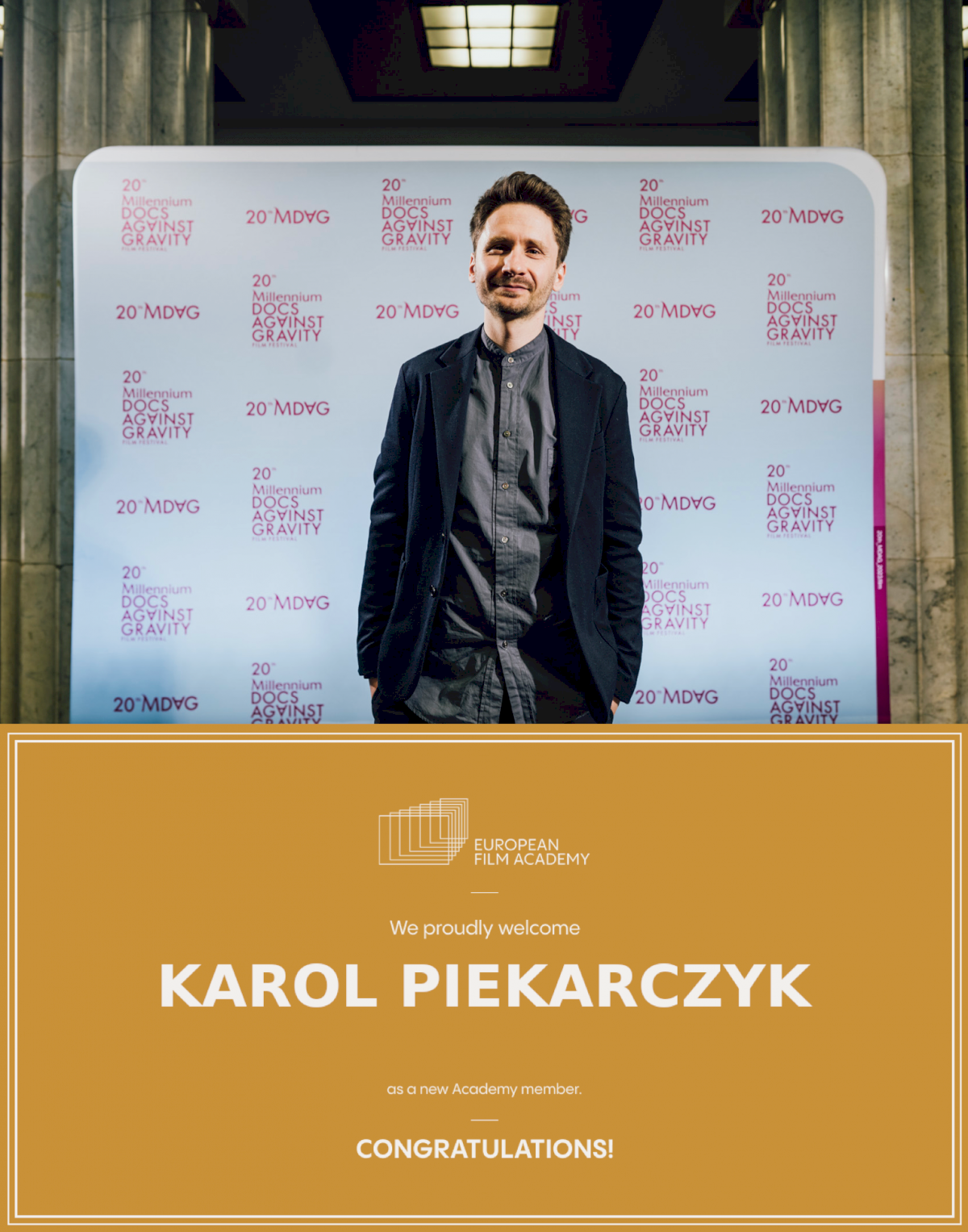 Karol, oprócz tego, że jest wspaniałym dyrektorem artystycznym, to też po prostu fajny człowiek. Ogromnie się cieszymy i gratulujemy, że od dzisiaj jest członkiem EFA!